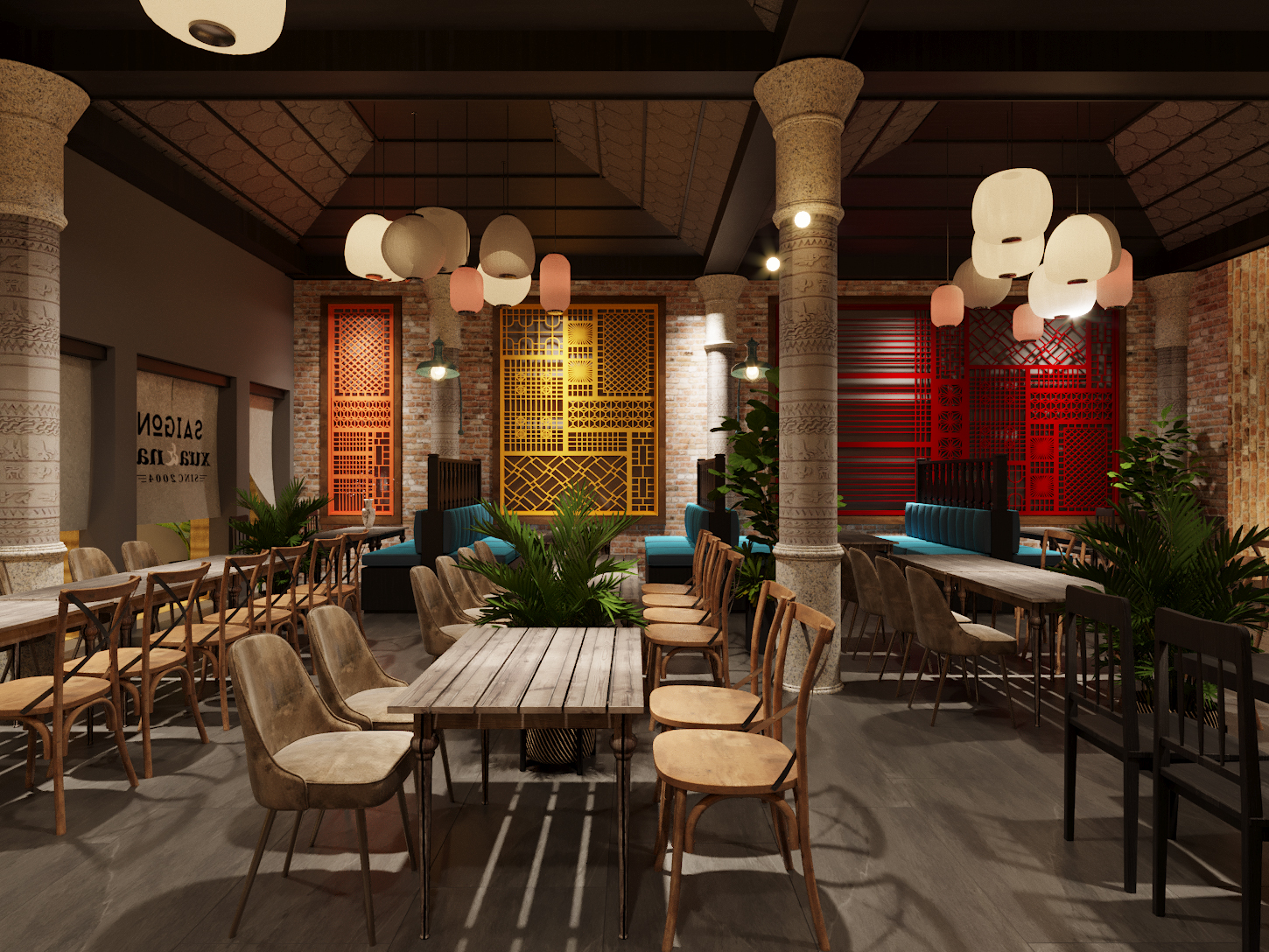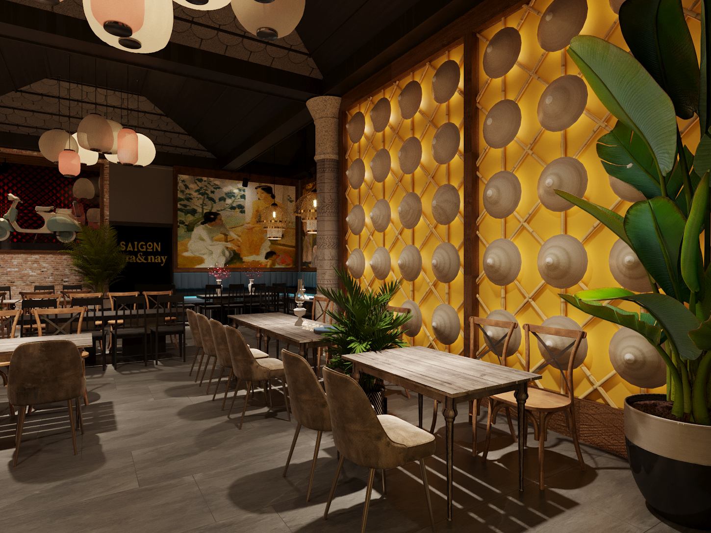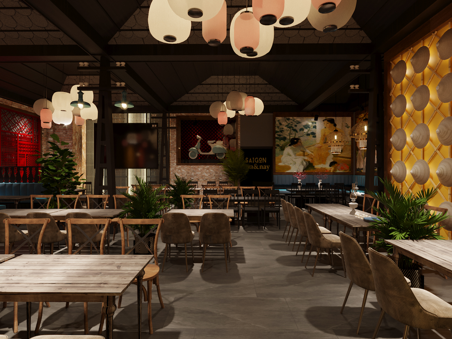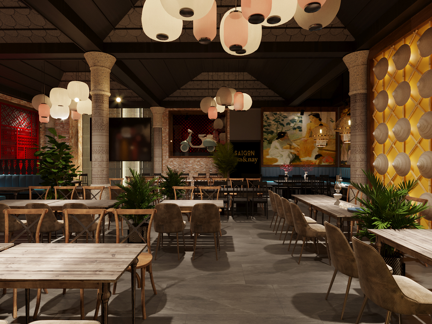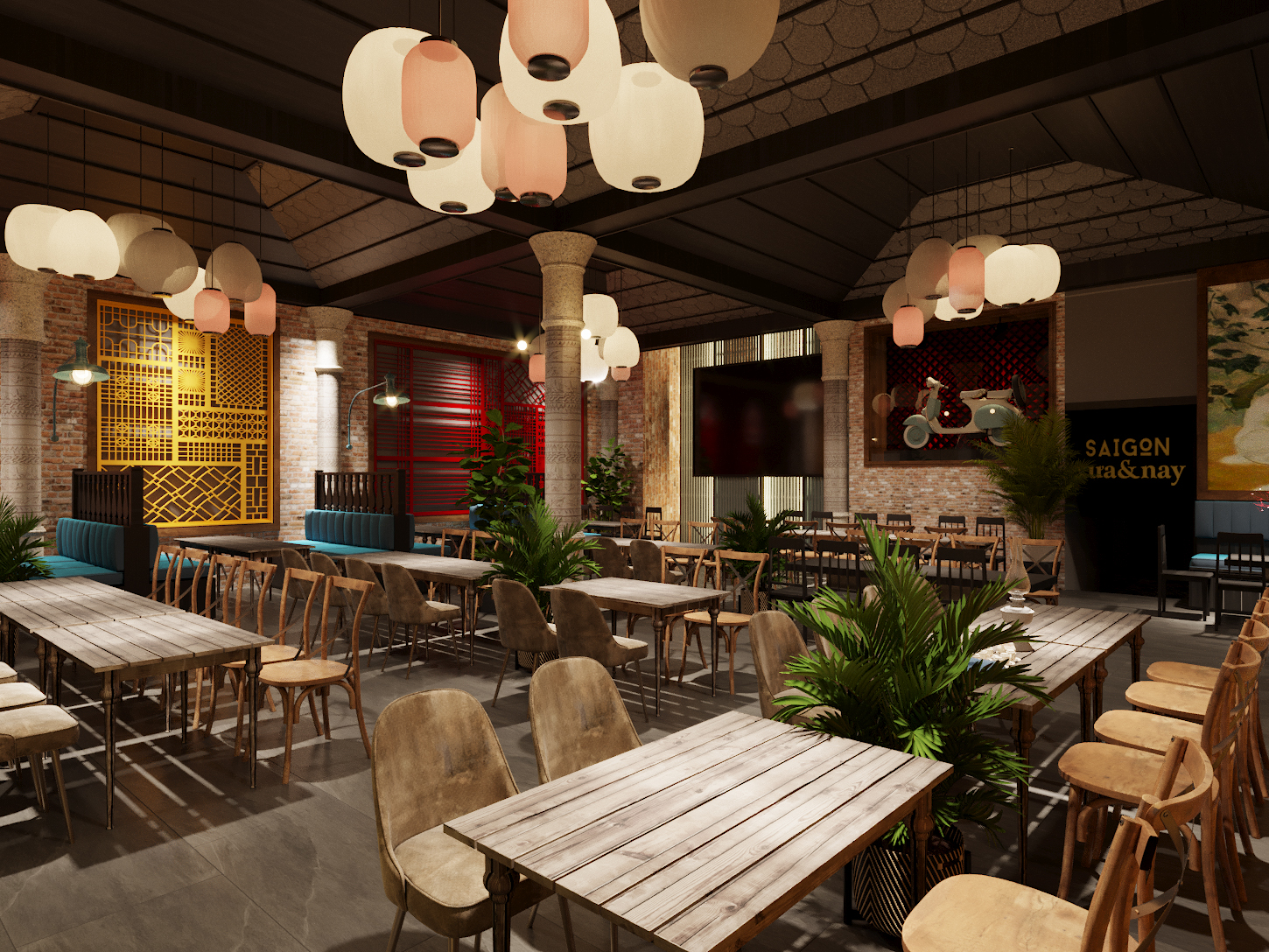 Đây là một phong cách kết hợp giữa những chi tiết đường nét xưa cũ của Sài Gòn hòa quyện với các vật liệu, cách xử lý kỹ thuật mới để tạo nên một nhận dạng mới cho Xưa và Nay!